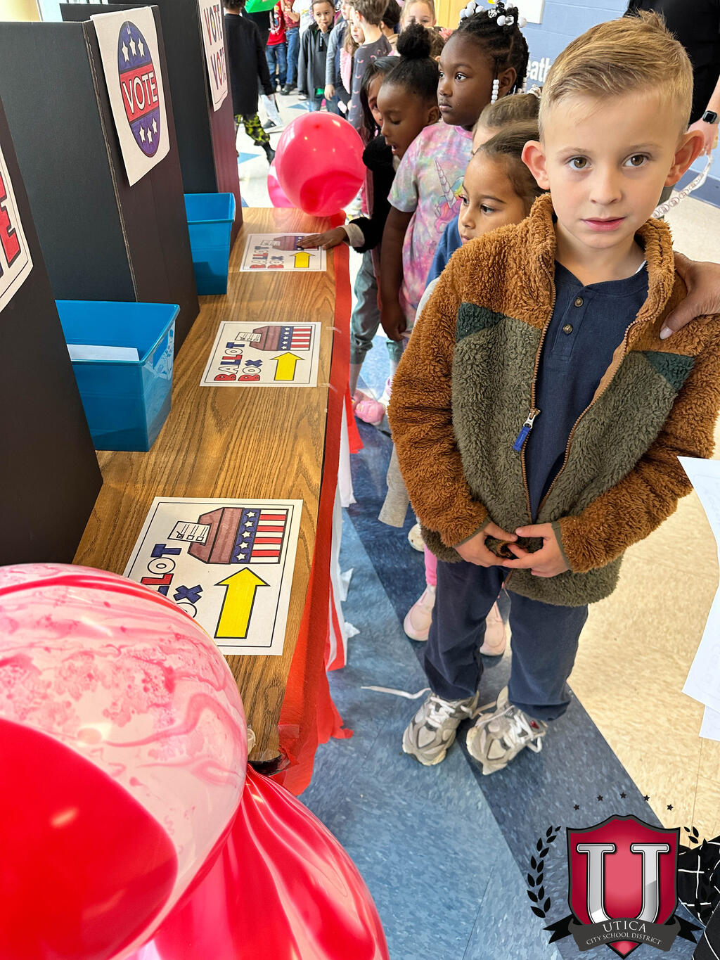 Albany Elementary kindergarteners nọrọ izu ahụ na-emikpu n'ime ụwa ịtụ vootu! Site n'ịdenye aha na votu ruo na ịtụ vootu ha, ụmụ akwụkwọ mụtara maka usoro ịtụ vootu n'ụzọ na-atọ ụtọ, aka.